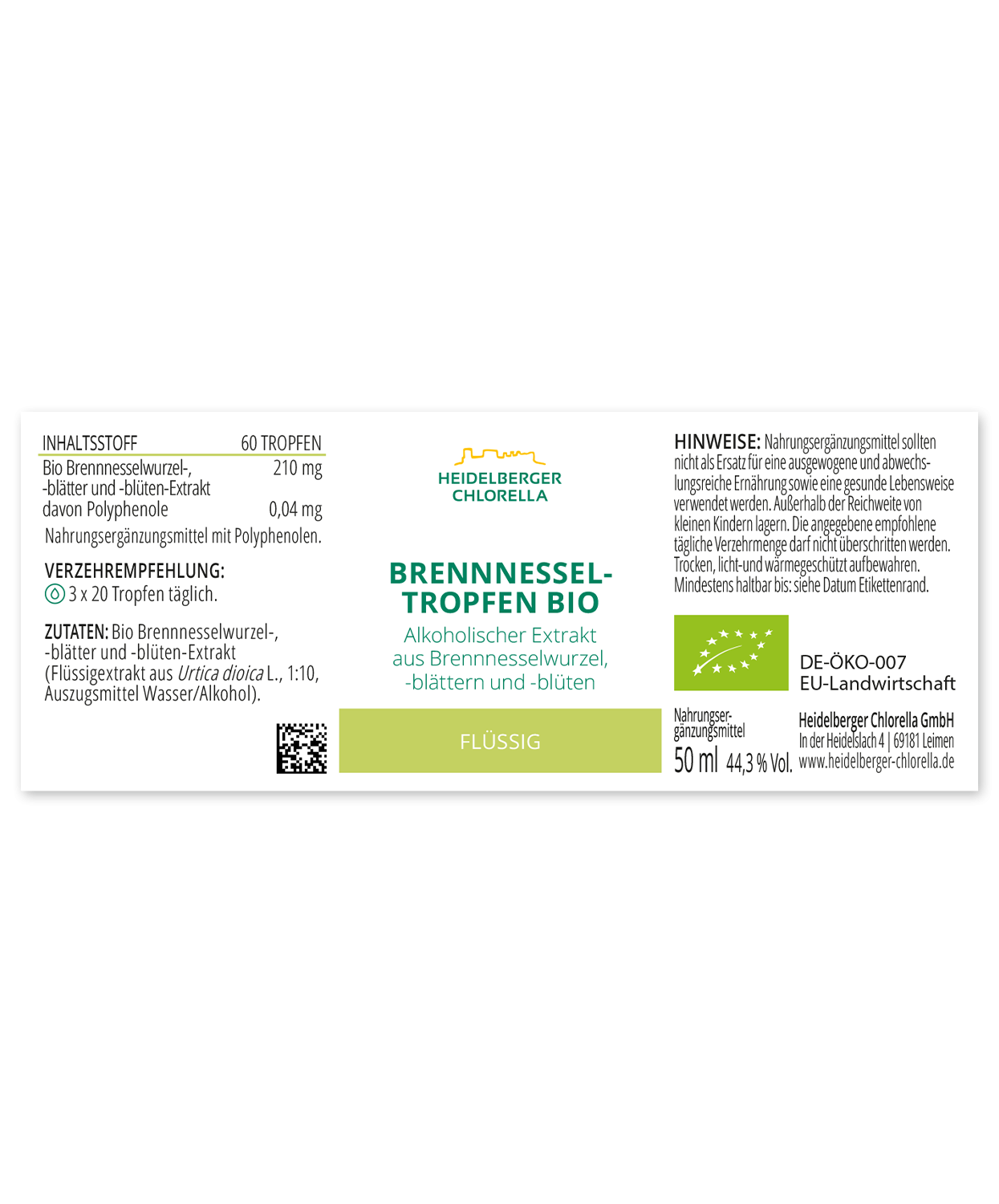 Bio Brennnesselwurzel-, -blätter und -blüten-Extrakt (Flüssigextrakt aus Urtica dioica L., 1:10, Auszugsmittel Wasser/Alkohol).