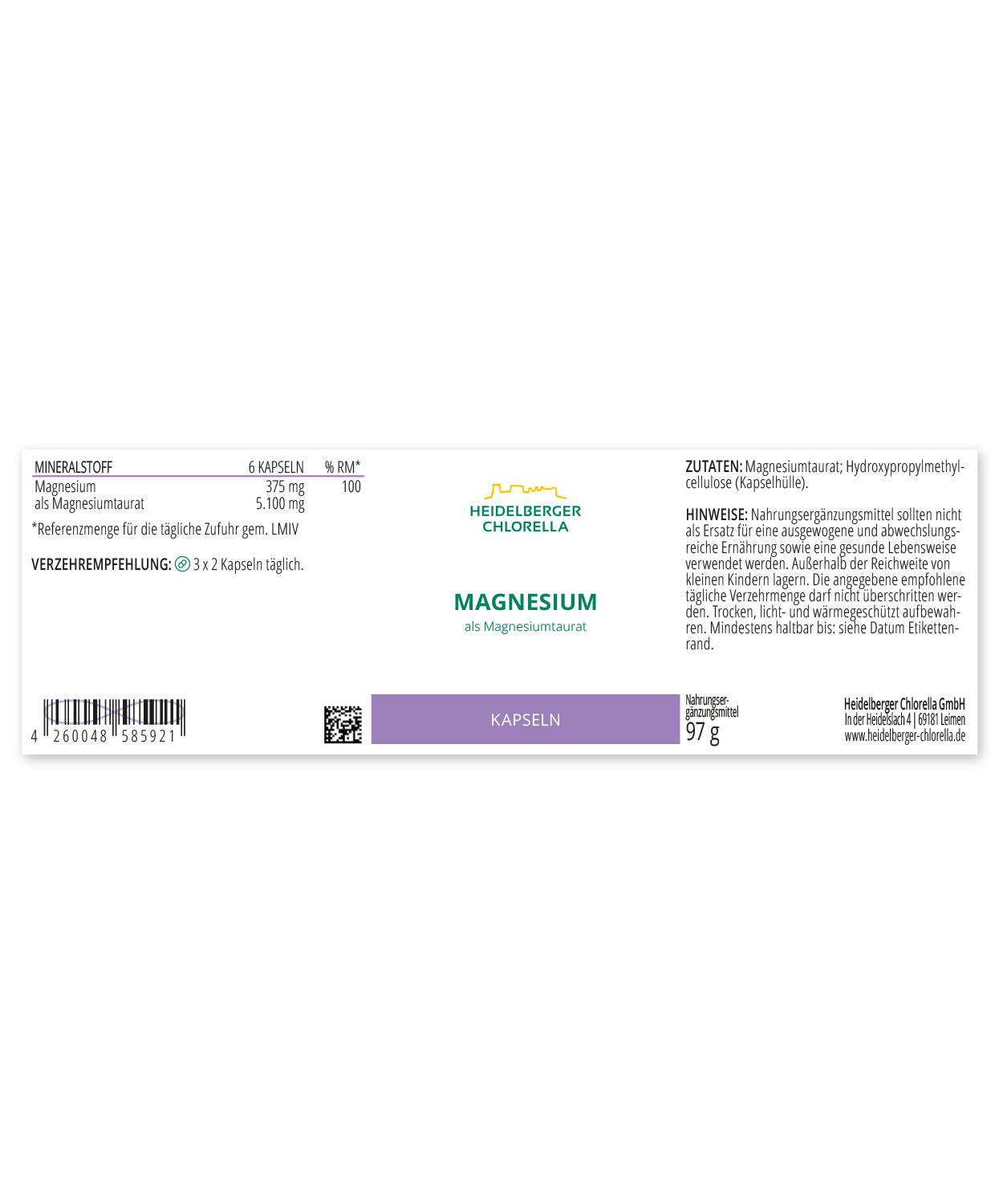 - über 60 mg elementares Magnesium pro Kapsel