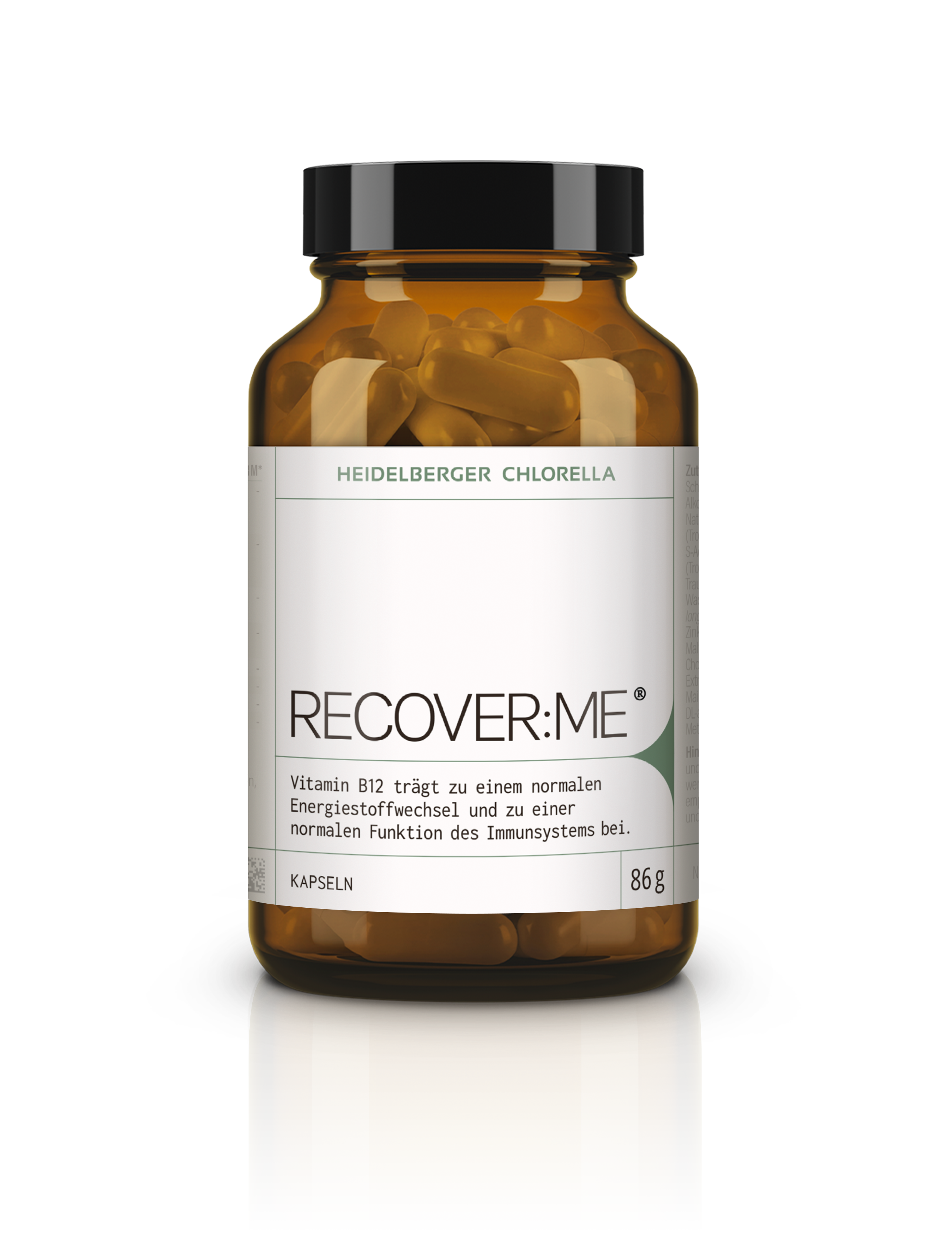 Recover:Me liefert eine durchdachte Kombination aus bioaktiven B-Vitaminen, pflanzlichen Extrakten und wichtigen Mikronährstoffen, um körpereigene Prozesse optimal zu begleiten. B-Vitamine wie B2, B3, B5, B6, B12 und Folat tragen zu einem normalen Energiestoffwechsel sowie zur Verringerung von Müdigkeit und Ermüdung bei. Zudem unterstützt Vitamin B1 die normale Herzfunktion, während Vitamin B12 eine wichtige Rolle für das Nervensystem spielt.